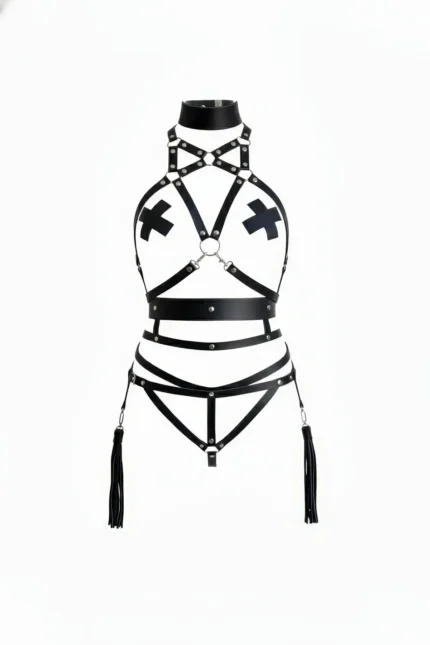 Leather Fancy Dress with Handcuffs, Leather Harness Set – SH1016