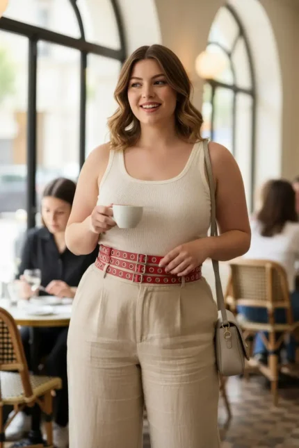 58,9 $Plus Size Red Women’s Belt, Thick Leather Waist Accessory with Multiple Buckles – SH641