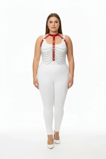 31,9 $Plus Size Red Women’s Harness Set with Chain Detail Leather Body Accessory – SH721