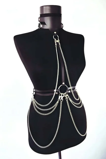 14,9 $Stylish Leather Harness Set with Chain Detail, Fancy Dress with Handcuffs – SH1098