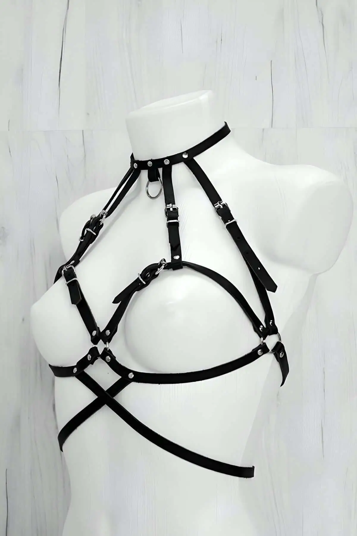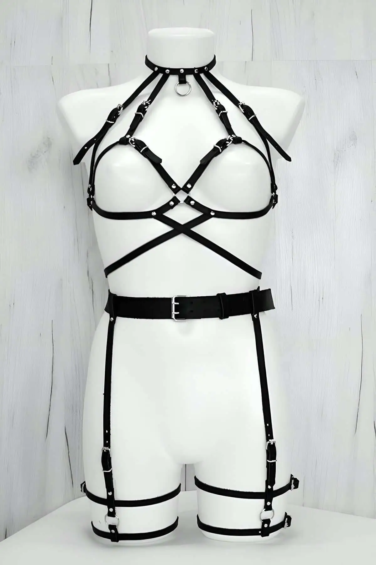 Elevate your collection with this exceptional Harness Set. The dramatic gothic style is evident in the structured straps and multiple O-rings, giving it an undeniable edge. Each component is meticulously stitched, demonstrating the expertise and craftsmanship invested in its creation. We use durable, premium faux leather that feels supple against the skin while maintaining its shape. The adjustable fit is crucial, allowing you to customize the tightness and placement of every strap for maximum comfort and dramatic effect, securing its place as essential attire.