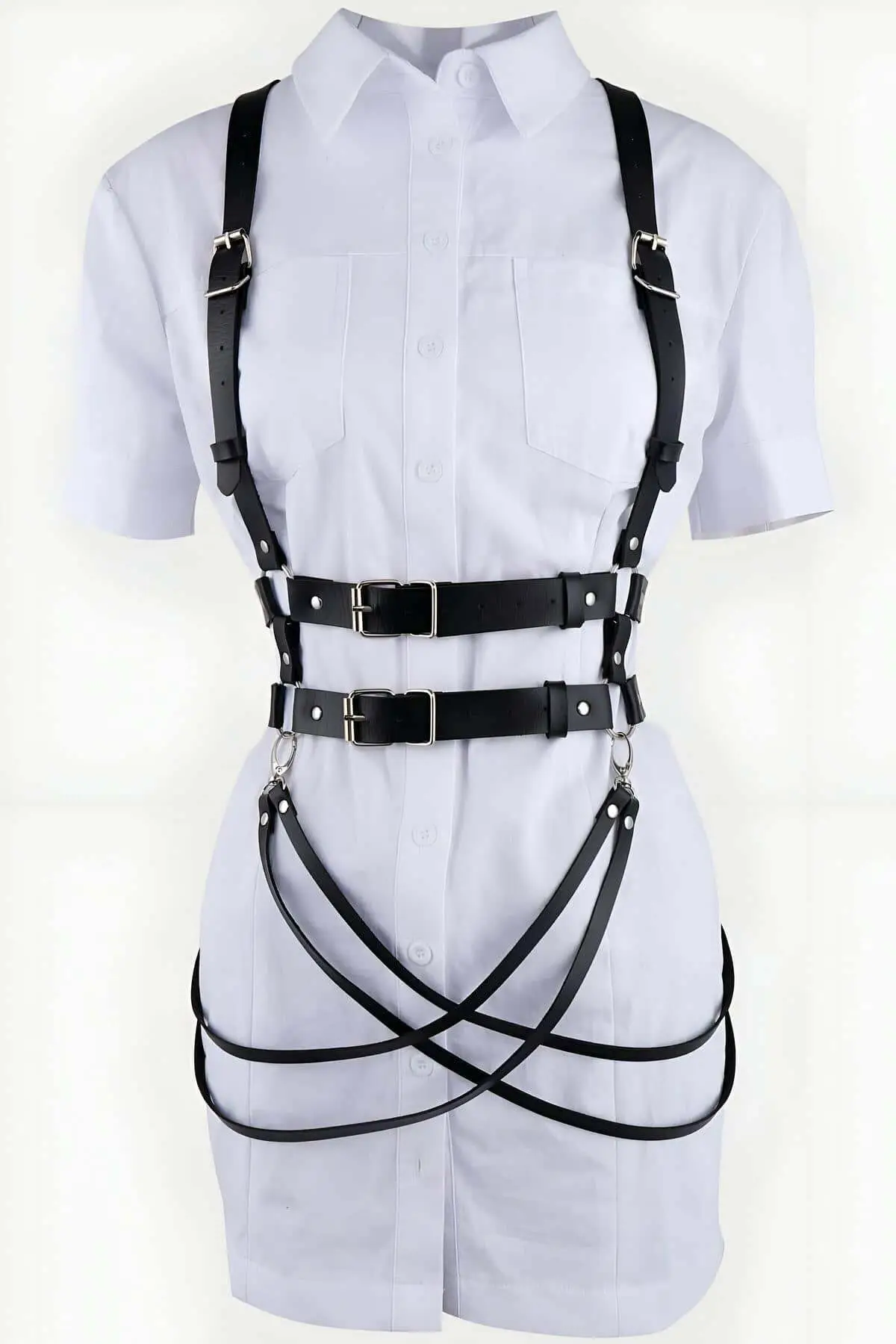 Plus Size Black Women’s Leather Harness Belt with Chain and Choker Details – SH1066