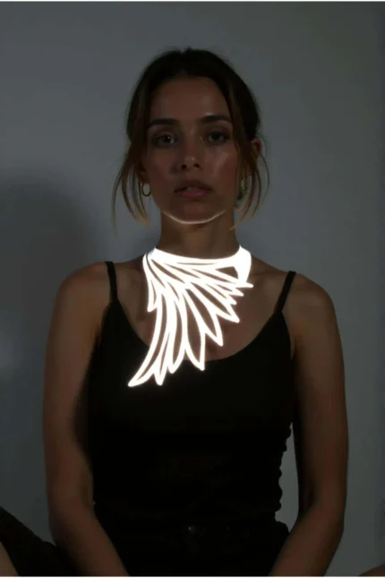 Large White Reflective Bird Wing Choker Necklace, Stylish Laser Cut Necklace – SH1418