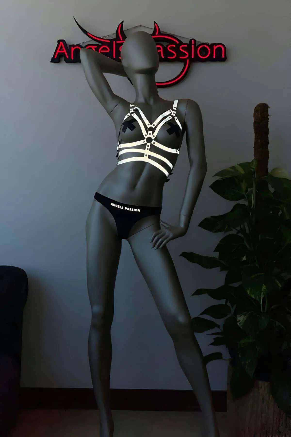 Designed to blend fashion and function, this harness targets a modern, confident wearer. The crisp white color is versatile, pairing perfectly with black clothing for a dramatic contrast or layered over other provocative lingerie. Whether you are aiming for an edgy festival gear statement or a compelling look for a photoshoot, the unique reflective quality ensures all eyes are on you. Discover more luminous styles built for maximum impact in our dedicated Reflective Harness category today.