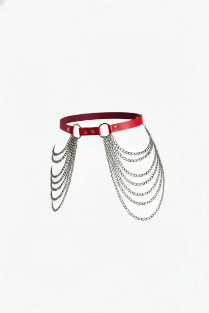 Red Women’s Leather Body Accessory with Belt and Chain Detail – SH701