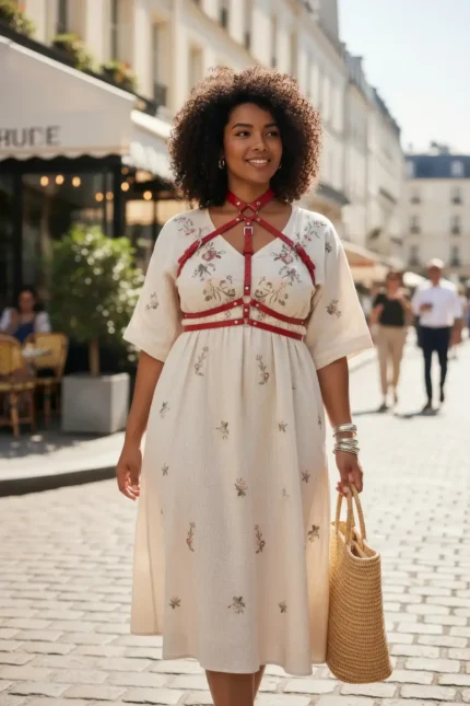35,9 $Plus Size Red Women’s Leather Harness with Chain Detail – SH797