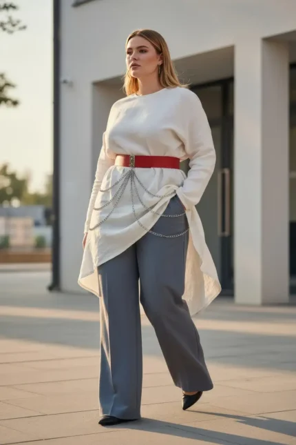 33,9 $Plus Size Red Women’s Belt with Thick Chain Detail Dress Combination Belt – SH904