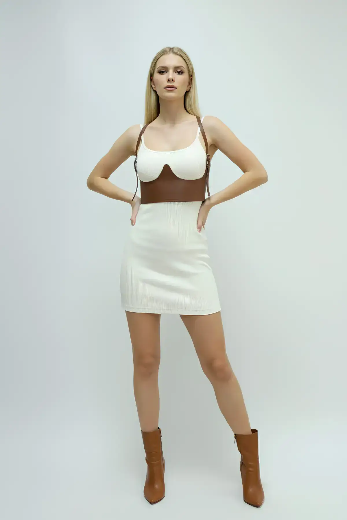 Women’s Belted Corset-Style Faux Leather with Shoulder Detail – SH614