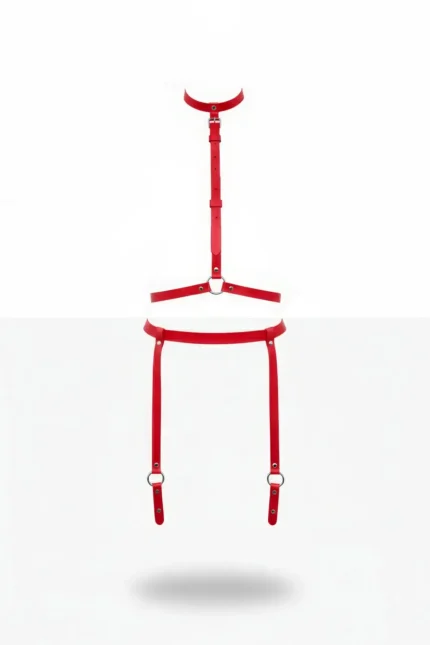 Red Harness Set Faux Leather Body Accessory with O-Ring Detail – SH230