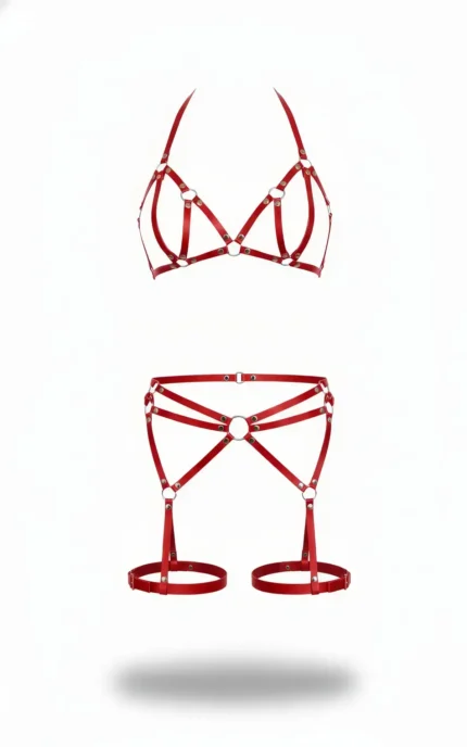Red Harness Set with Metal Ring Detail Bralette Garter Set – SH547