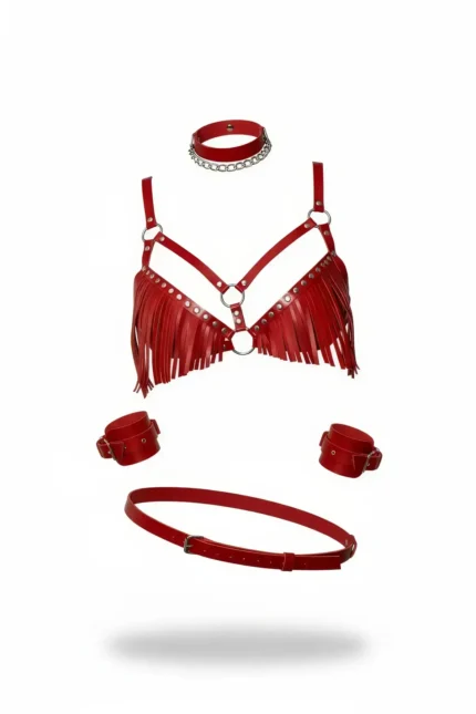 Red Harness Set with Tassel Detail and Metal Ring – SH896