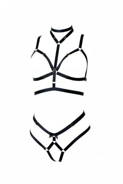 Black Harness Set with Choker Detail, Bralette and Panty Set – SH362