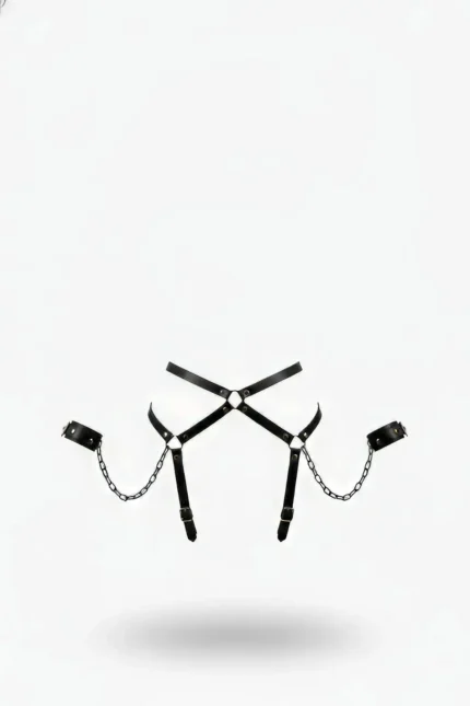Black Harness Set with Chain Detail and Handcuffs – SH708